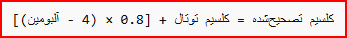اگر آلبومین خون پایین باشد، مقدار کلسیم توتال ممکن است گمراهکننده باشد. در این صورت از فرمول تصحیح کلسیم استفاده میشود: