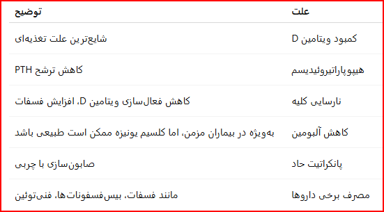 علل کاهش کلسیم خون (هیپوکلسمی)