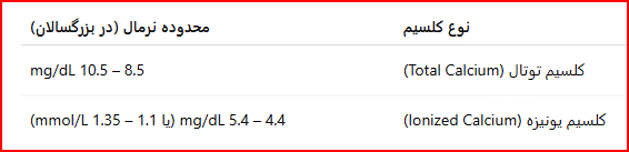 - اندازهگیری:سطح کلسیم از طریق نمونهگیری خون (کلسیم توتال و کلسیم یونیزه) و ادرار قابل اندازهگیری است.